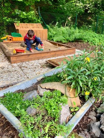 Dětský koutek v zahradě nabízí kromě velké trampolíny o průměru 5m také pískoviště 2x2m s velkým výběrem hraček. Na zahradu je možné vypůjčit míč, k vodě pak nafukovací hračky. Pro zdatnější je na našem jezírku k dispozici malá lodička. Pro děti od 3 do 6 let je k dispozici elektrická čtyřkolka. Lesní domek v korunách stromů je prozatím ve výstavbě.
