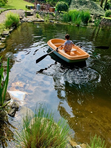 Přírodní koupací jezírko o rozměrech koupací části 15x12m, max. hloubka 170cm, letní teplota cca 21 stupňů. Pohodlný vstup do vody, k dispozici lehátka, zahradní nábytek, houpací síť, lodička. Nezávadná pramenitá voda bez chemického ošetření. Koupání na vlastní nebezpečí.